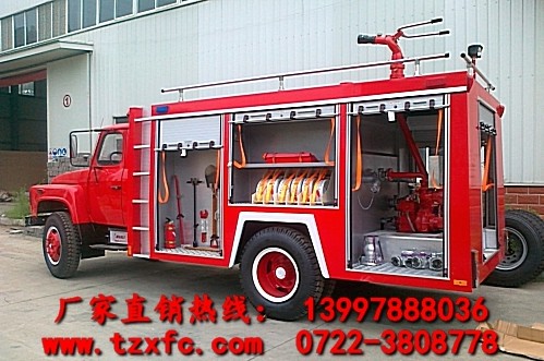 ※消防車又名滅火車、救火車。采用二類載貨汽車底盤改裝而成,專用部分由液罐、泵室、器材箱、動力輸出及傳動系統、管路系統、電氣系統等組成,廣泛適用于城鎮公安消防隊、石油化工、廠礦企業、森林、港口、碼頭等部門,可迅速接近火場展開滅火戰斗,撲救各種火災,是理想的消防裝備。