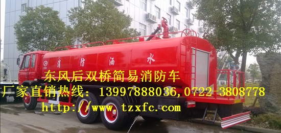 東風后雙橋簡易消防灑水車采用東風二類底盤改裝,采用消防車專用消防泵,后置工作平臺,具有價格便宜,實用性強,射程遠等優點。
