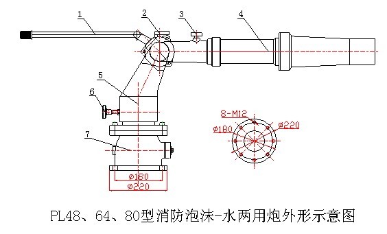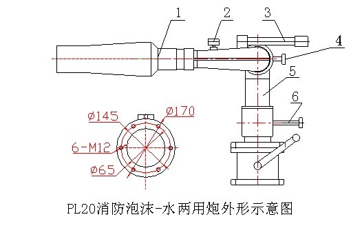 PL48:表示噴射介質分別為泡沫混合液和水、泡沫混合液流量為48L/s的手動消防泡沫—水兩用炮