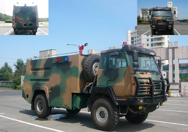 森林越野消防車是用中國重汽特種車公司生產的ZZ2152M4221J型4×4軍用汽車二類底盤改裝設計的中型消防車,乘員3人。該車裝有性能良好的上海雄真型CB10/30低壓消防泵一個4500升的罐體及必要的常規消防器材。