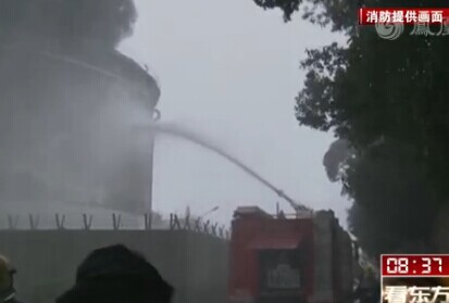 湖北江南專用特種汽車有限公司最新消防消息:金山區北隋唐河路3621號金山石化物料倉儲液體料作業區,一個含硫污水調節罐突發燃燒。罐內裝有500噸輕質油,另有5500噸含硫污水。上海消防隊參加救火,派發十多輛消防車到達失火現場(如圖)