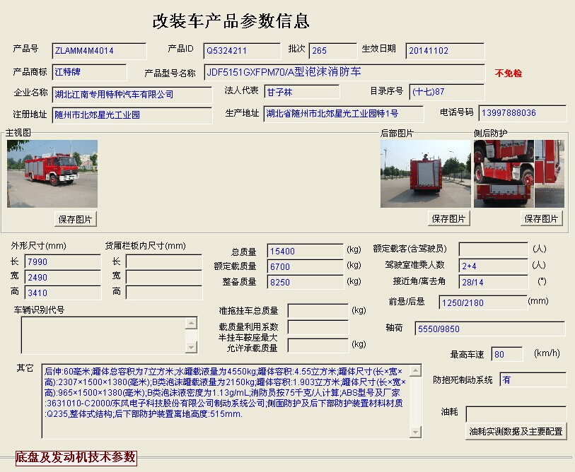 2014年正是國三轉國四階段,我廠國四消防車的公告也陸陸續續批下來了,7噸消防車國三車型是沒有公告的,非公告是可以生產的,很多客戶也咨詢想買7噸消防車,因此,我廠就申報國四7噸消防車的公告,目前2款車型公告全部下來,請看7噸消防車公告,