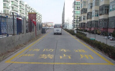 高層(指十層及十層以上的住宅)建筑消防車道設計要求:低層、多層、中高層住宅的居住區內宜設有消防車道,其轉彎半徑不應小于6m。高層住宅的周圍應設有環形車道,其轉彎半徑不應小于12m。