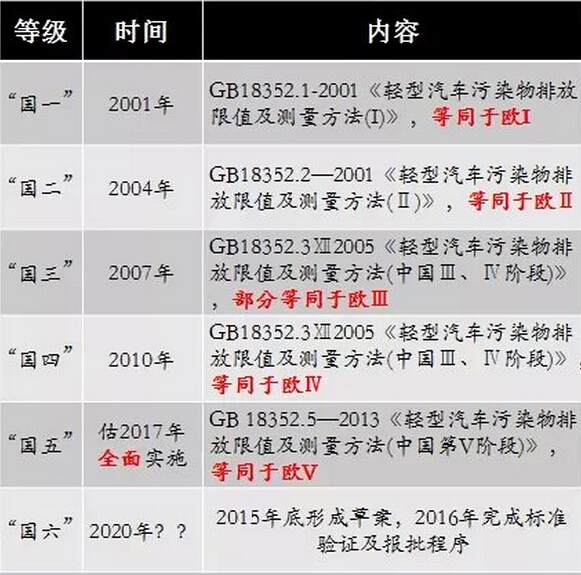 我國的汽車排放標(biāo)注:
