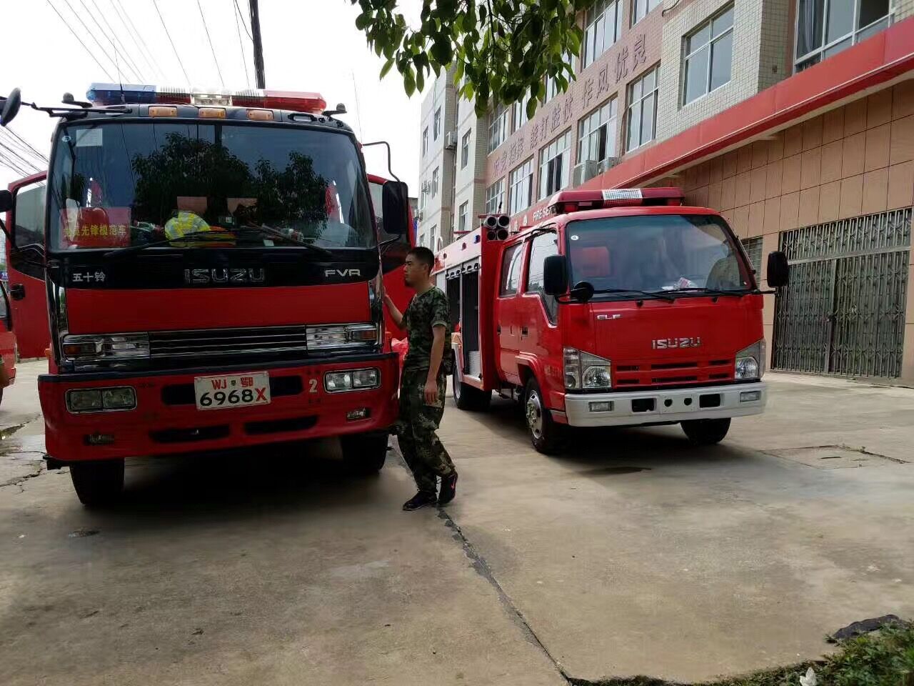 消防隊現場驗收五十鈴水罐消防車