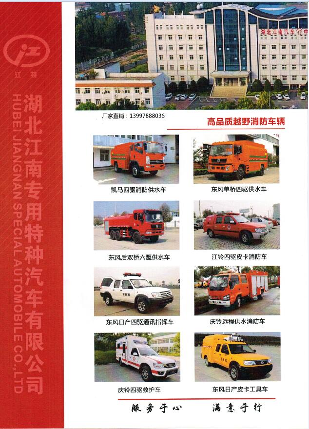 我公司推出越野森林消防車輛,其中有森林供水車,越野森林消防車,越野消防車,消防指揮車,四驅救護車,越野工具車等等越野消防車輛,廠家各款車型詳情請致電:13997888036董經理