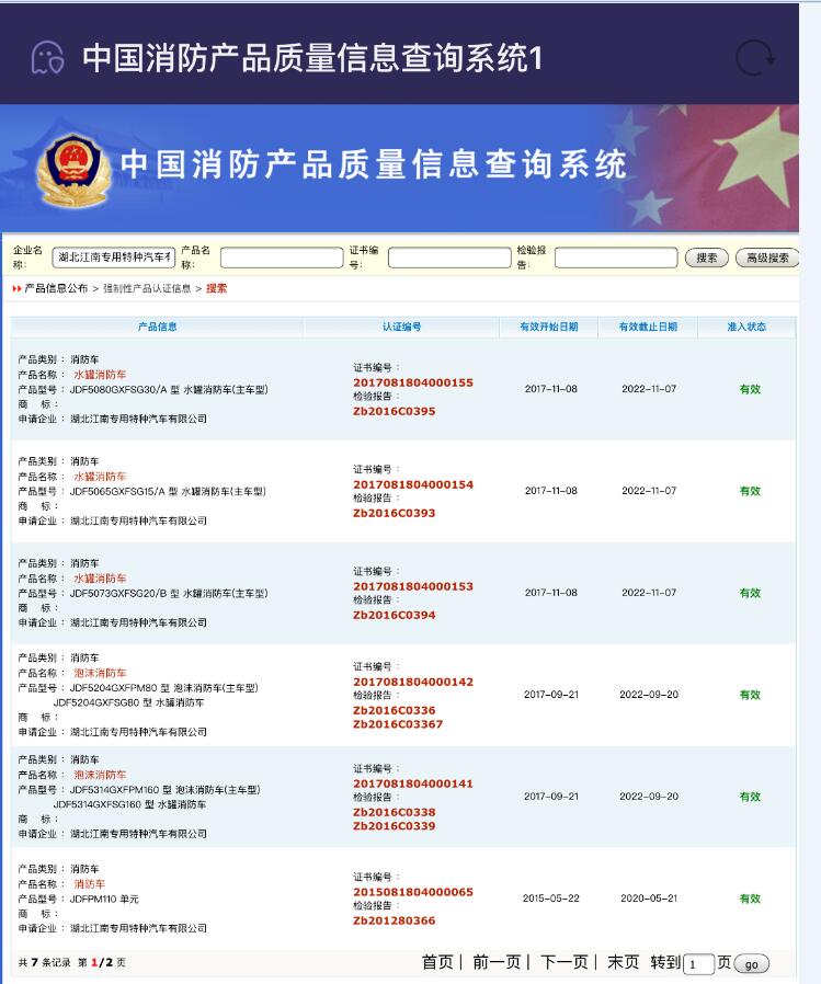 我公司研發(fā)的多款產(chǎn)品相繼通過了“公安部消防產(chǎn)品合格評定中心”CCCF認證,目前3C認證車型有5款,這份由國家最高權(quán)威機構(gòu)經(jīng)過嚴格檢測、審核后頒布的認證證書,為我公司消防車的安全性、可靠性提供了最有力的證明。其他各款消防車均已申報3C,后期會陸續(xù)下發(fā),詳情請咨詢廠家銷售熱線:0722-3808778