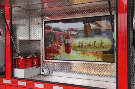 整車包含模擬訓練報警系統(tǒng)、模擬滅火教育演練系統(tǒng)、電器火災成因實驗系統(tǒng)、結繩逃生體驗、建筑消防設施模擬演示系統(tǒng)、LED屏顯示系統(tǒng)、電源保障及控制系統(tǒng)、視頻播放、高音廣播等多項系統(tǒng)功能,體驗項目大量采用了電腦控制技術,防火、滅火、報警求援、逃生、救護、娛樂互動等內容一應俱全。