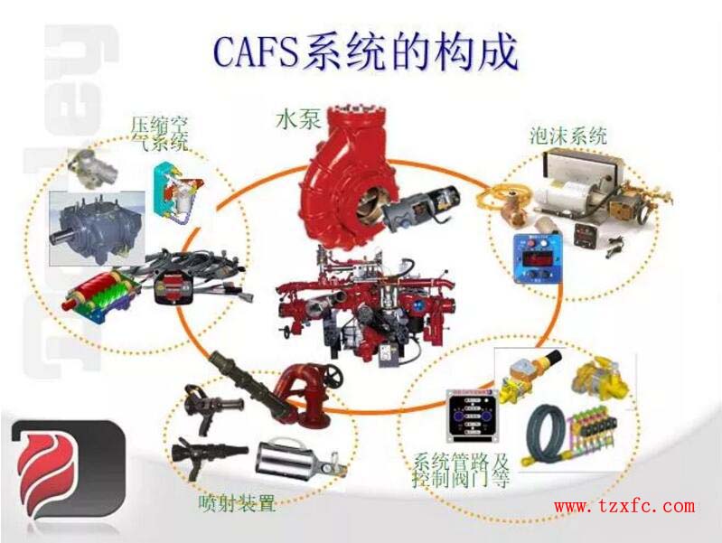 CAFS是一種高儲能泡沫,它含有大量高壓空氣,在CAFS中,水仍是最主要的部份,主要由泡沫、壓縮空氣和水的預混合,將泡沫水溶液充分細化和泡沫化,從而極大的增強了滲入燃燒物內部和粘附燃燒物表面的能力。