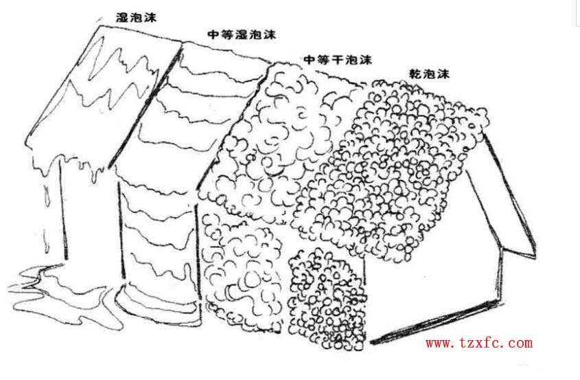 濕泡沫、中等泡沫(中等濕泡沫和中等干泡沫)、干泡沫。